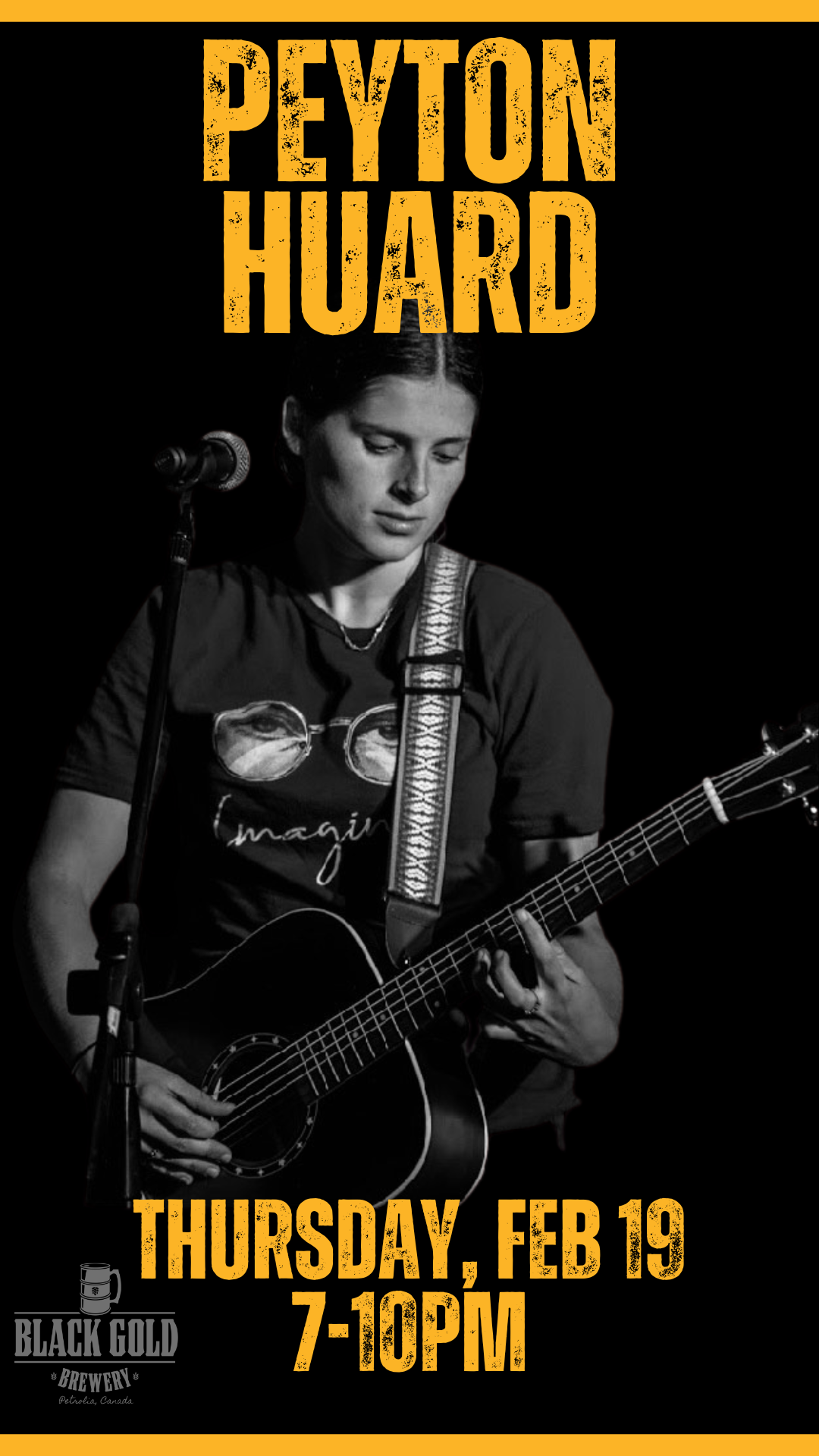 Join us at Black Gold Brewery on Thursday, Feb 19th at 7 PM to experience the incredible Peyton Huard performing live! Don’t miss your chance! Mark your calendars, grab your friends, and get ready for an unforgettable night of music and craft brews. See you there!