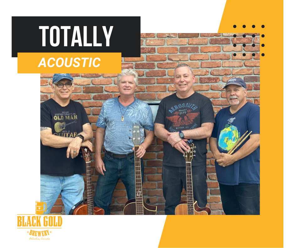 Black Gold Brewery 395 Fletcher St., Petrolia, Ontario, CanadaFriday, May 1st, we welcome Totally Acoustic to our Taproom from 8-11pm! Totally Acoustic is a four-piece acoustic Band playing the best rock songs of the 60s, 70s & 80’s.